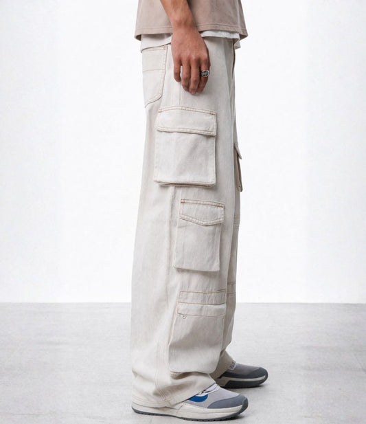 Ecru Multipocket Cargo Jeans