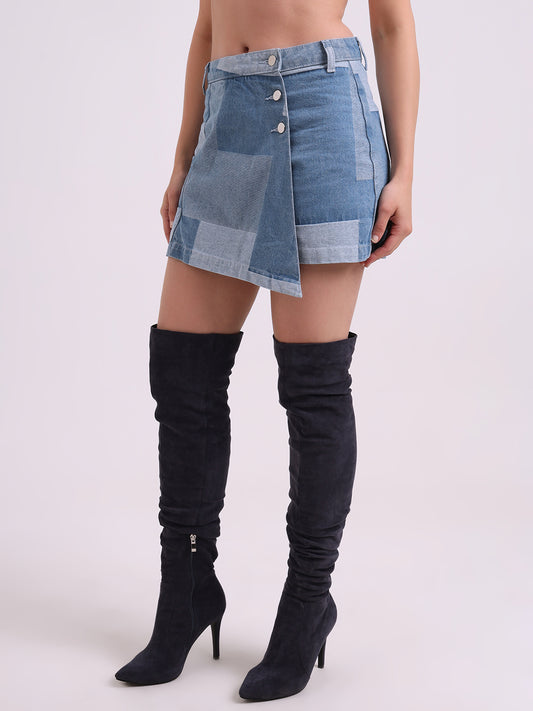 65% OFFPatchwork Denim Skort